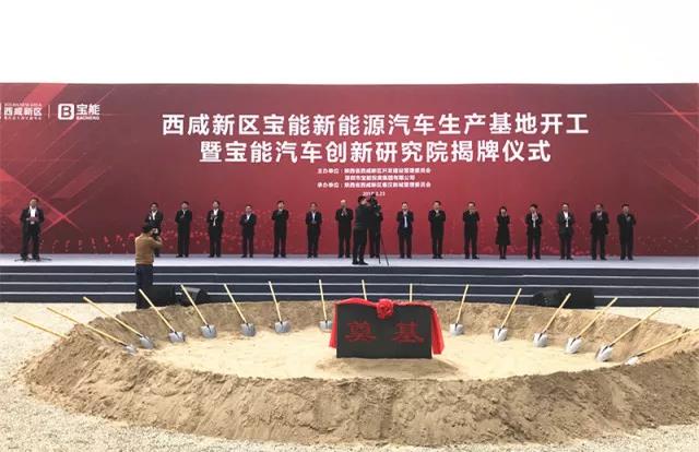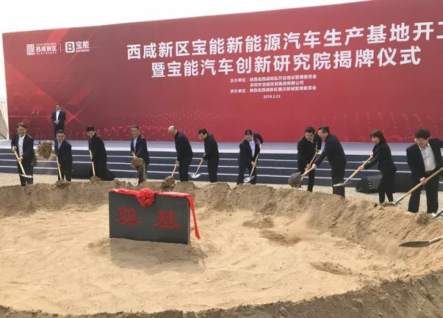 3月23日西咸新區(qū)寶能新能源汽車生產(chǎn)基地開工暨寶能汽車創(chuàng)新研究院揭牌儀式在陜西省西咸新區(qū)秦漢新城舉行。該項目總投資約400億元,規(guī)劃產(chǎn)能100萬輛(其中一期50萬輛)新能源汽車及配套項目,整車和零部件制造產(chǎn)值將超過千億元。這是寶能在新能源汽車產(chǎn)業(yè)的重大布局,也是西咸新區(qū)開工建設(shè)的千億級工業(yè)產(chǎn)業(yè)項目。